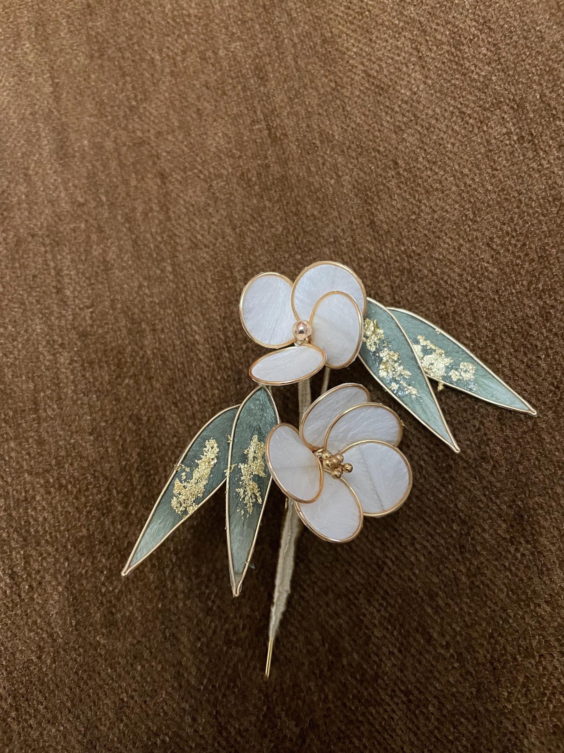 Silk Bamboo Leaf Brooch: Chinese Style Vintage Jewelry Pin